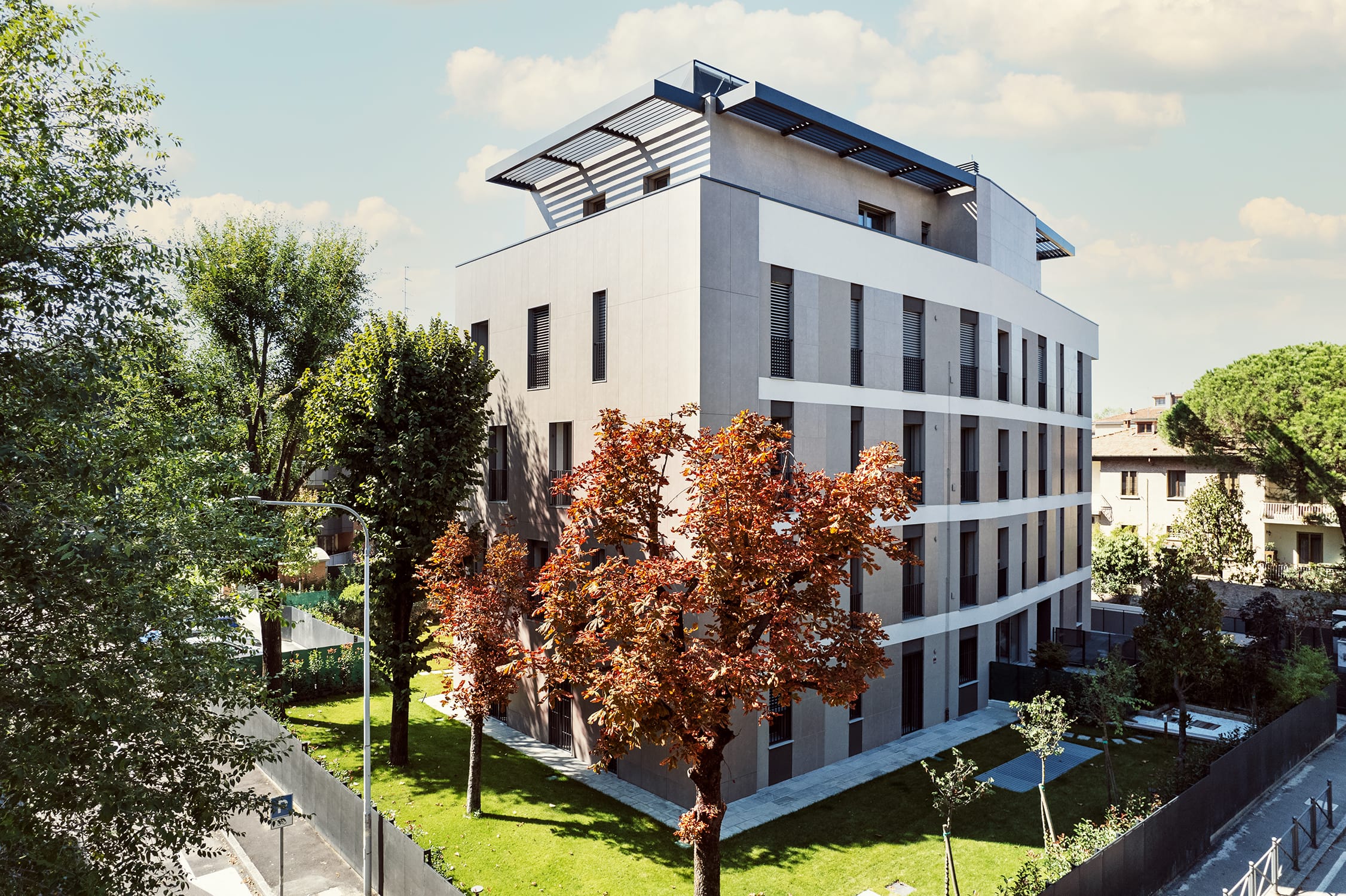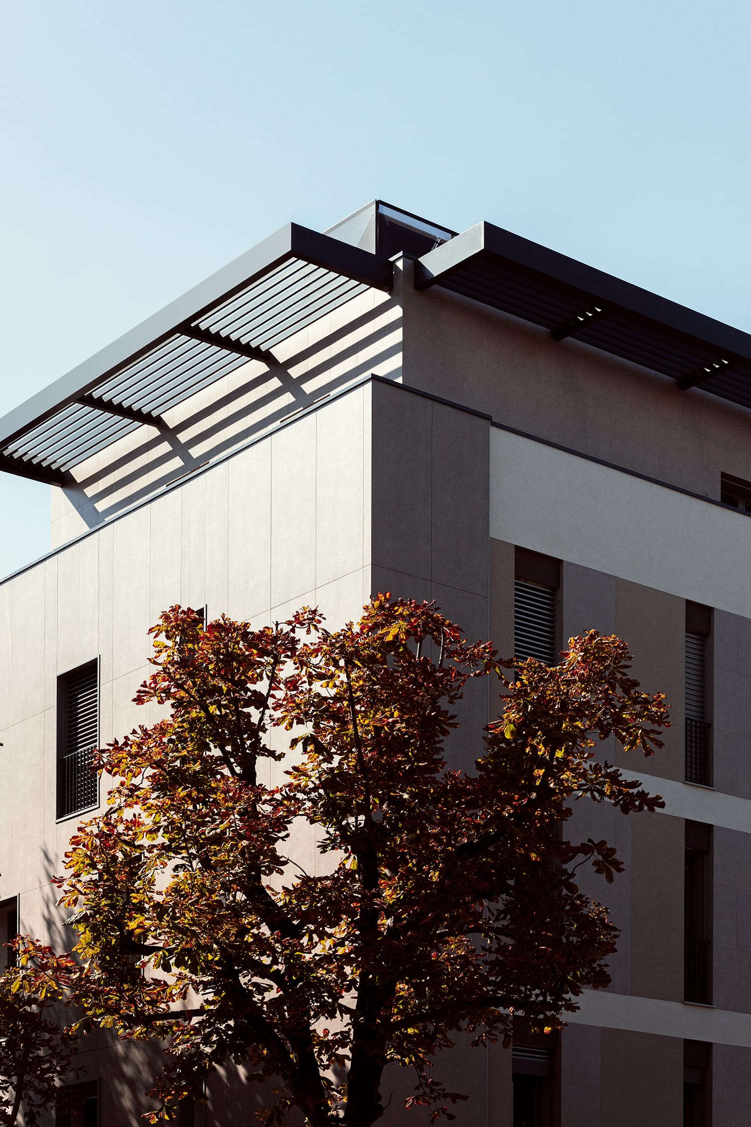 Questo intervento rappresenta un esempio concreto di rigenerazione urbana capace di coniugare architettura contemporanea, efficienza energetica e qualità dell’abitare. L’edificio si inserisce in un tessuto consolidato, reinterpretando il fronte urbano con linee essenziali e un uso calibrato di materiali e schermature che dialogano con il contesto circostante.