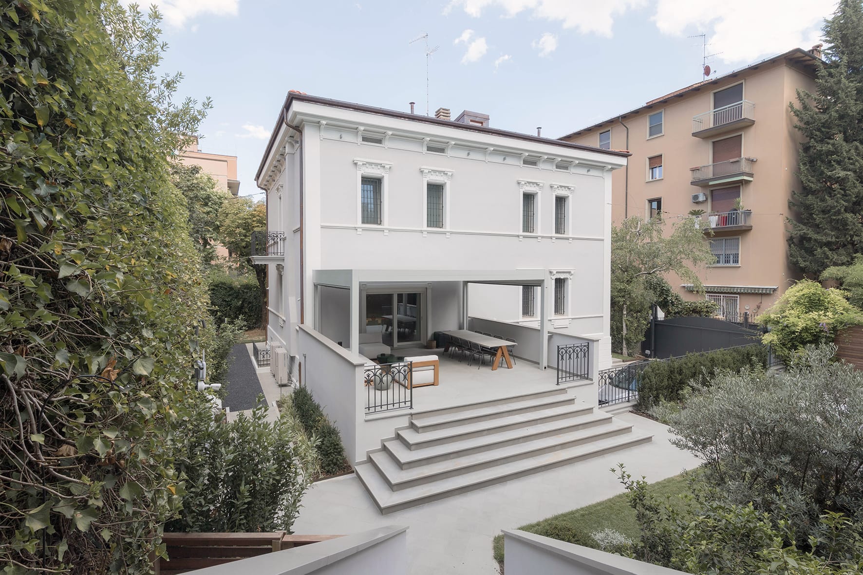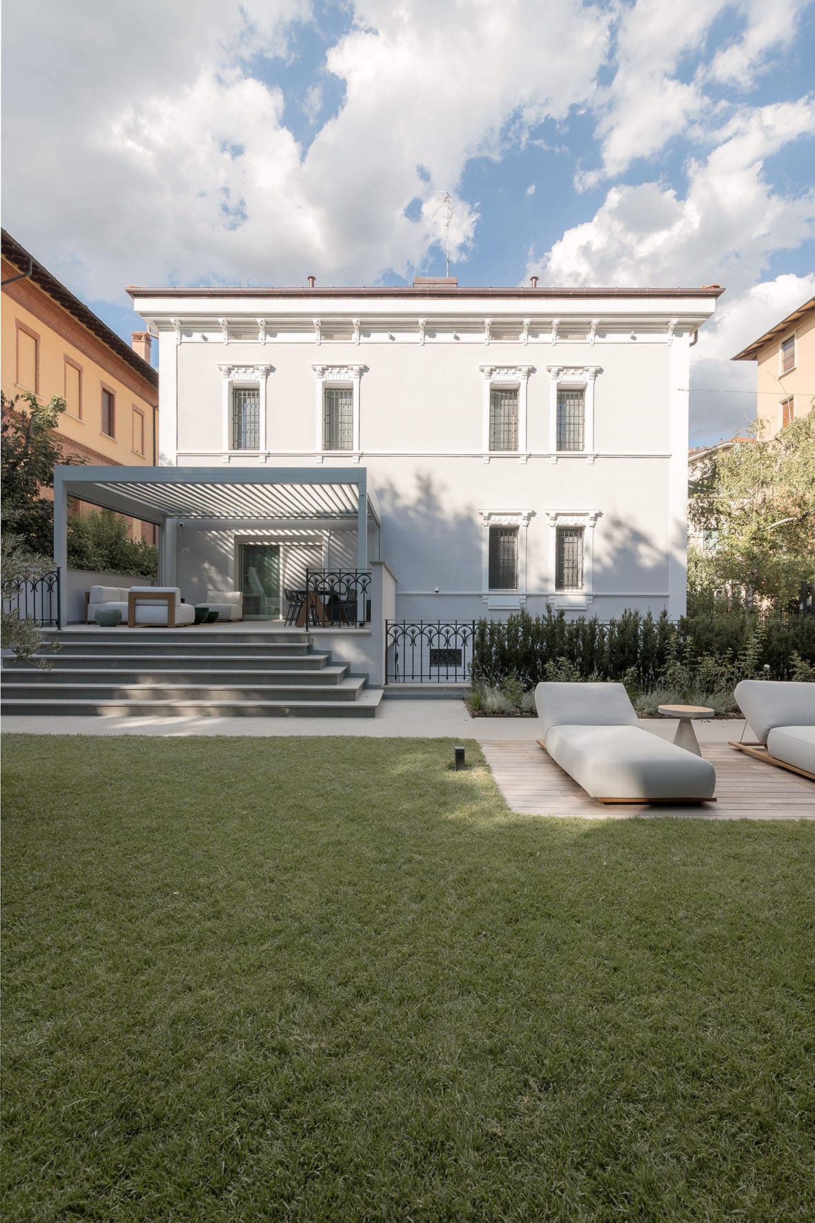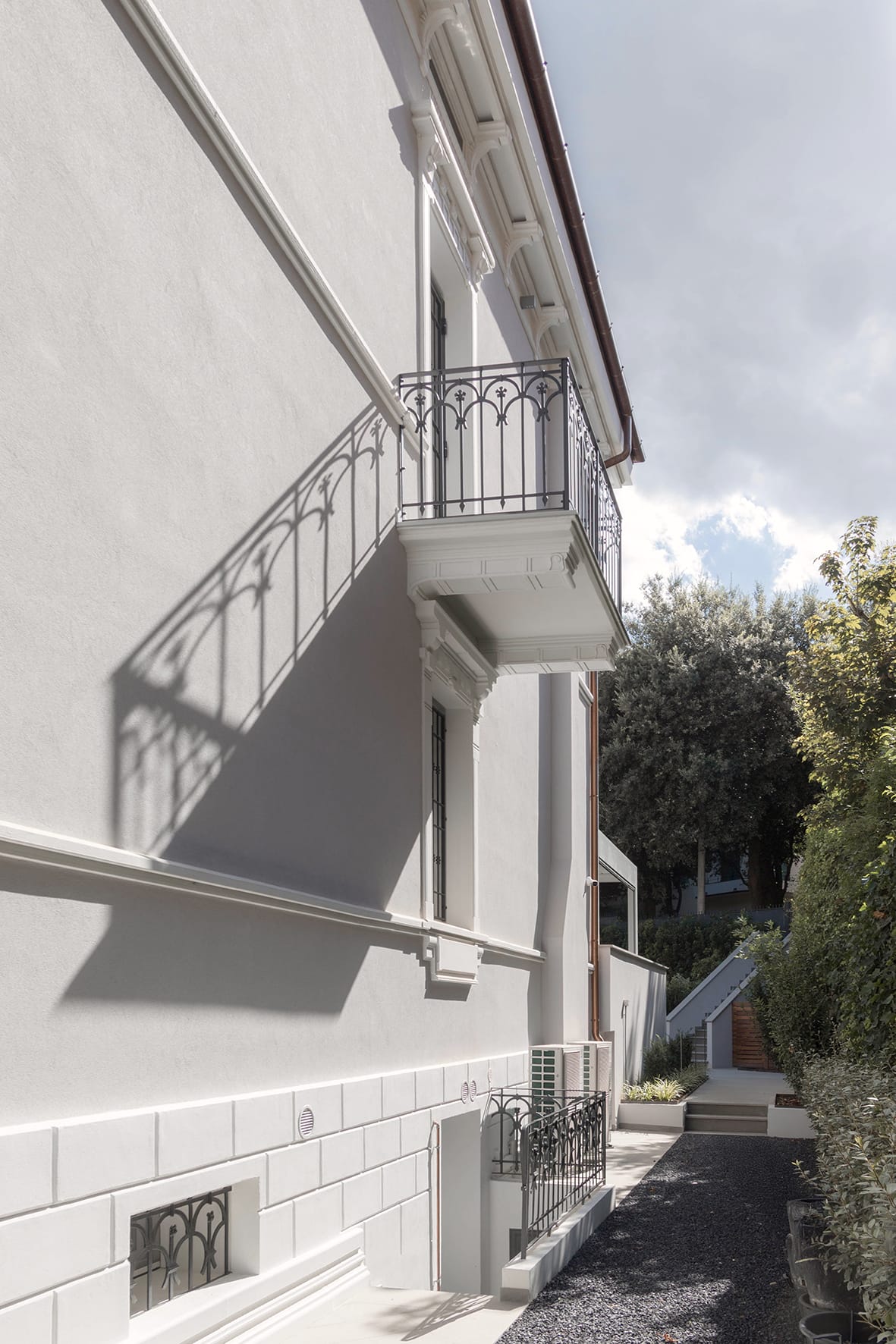 Il progetto di ristrutturazione riguarda una villa dal forte sapore storico, inserita in un contesto urbano consolidato e caratterizzata da un’elegante architettura di inizio Novecento. L’intervento nasce dalla volontà di valorizzare l’identità originaria dell’edificio, preservandone i caratteri architettonici distintivi e reinterpretandoli in chiave contemporanea.