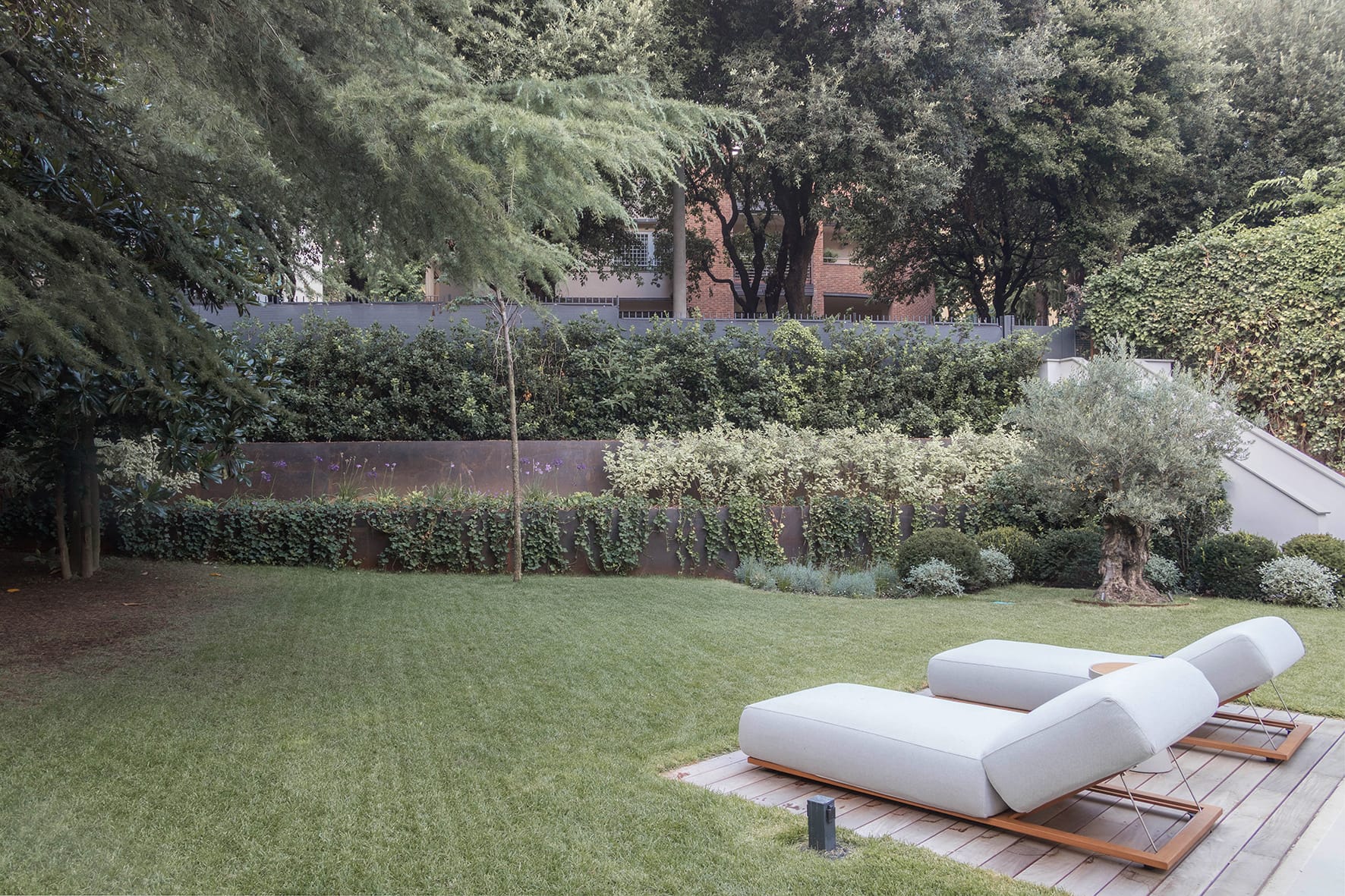 Le facciate sono state oggetto di un attento lavoro di recupero e restauro, volto a restituire proporzioni, cornici, modanature e dettagli decorativi nella loro espressione autentica. L’immagine esterna mantiene il linguaggio classico della villa, dialogando in modo equilibrato con il contesto e con il verde circostante, elemento fondamentale della percezione dell’edificio. Il progetti di interni ed esterni è stato realizzato in collaborazione con AtelierAvanzi.
